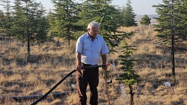 Konya'da Ramazan Uludağ (79), 25 yıl önce ağaçlandırmaya başladığı bozkır olan Boztepe'yi ormana dönüştürdü. O dönemlerde düğün ve nişanlarda mani söyleyen Uludağ, bahşişleriyle fidan satın alıp dikmeye başladığını belirterek, "Nişanlarda 'makas kesme' parası almazdım. Buraya ağacı diktiğim andan itibaren o bağışları almaya çalıştım. O parayla ağaç alıp, gelip buraya diktim. Yine Avrupalı arkadaşların ve eşin dostun yardımlarıyla bu ağaçları satın aldık, geldik, diktik. Burası, 20 dekar alan ve 2 bin 500 çam ağacı var" dedi.
