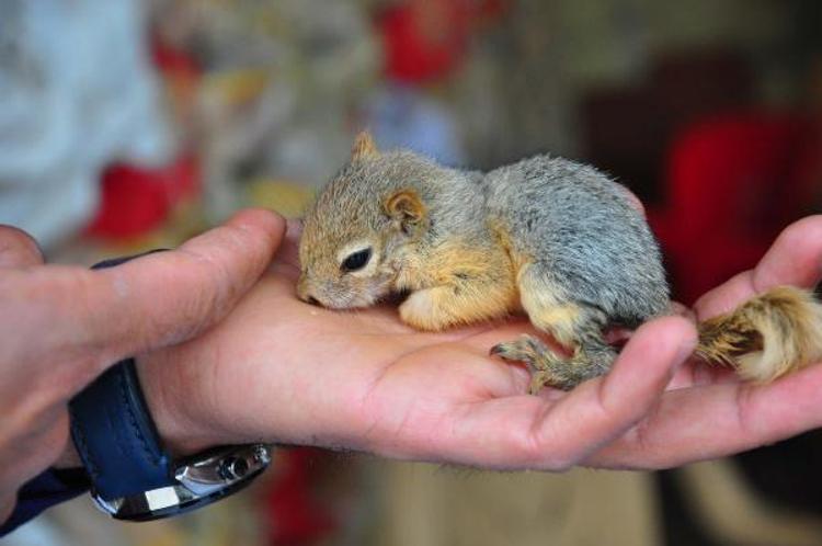 Hareketsiz duran yavru sincabı, annesinin alması için bulunduğu yerde dokunmayan Kaya, gün içerisinde kontrol ettiği hayvanı akşam saatlerine kadar aynı yerde beklediğini gördü.