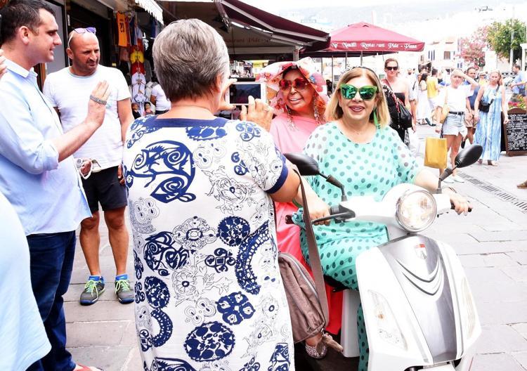 Yaklaşık 10 dakika Bodrum Çarşısı'nda elektrikli motosiklet ile gezen Bülent Ersoy, yerli ve yabancı turistlerin ilgi odağı oldu.