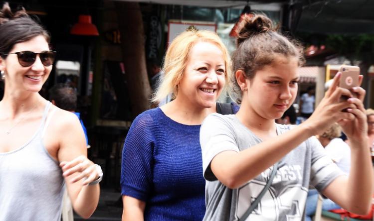 Çok sayıda basın mensubunu bİr arada gören yabancı turistler ise Bülent Ersoy'un kim olduğunu sorup, öğrendi, sonra da hatıra fotoğrafı çektirdi.