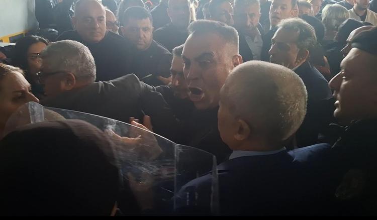 Bugün seçimin yapılacağı Büyükşehir Belediye binası önünde geniş güvenlik önlemi alındı. CHP’liler, saat 11.00'de yapılacağı açıklanan seçim için belediye binası önüne gelmeye başladı. Barikatları geçmeye çalışan partililer ile polis arasında tartışma çıktı. Kalabalık barikatı aşarken, CHP'li milletvekilleri ile ilçe belediye başkanları ve il örgütü üyeleri otoparktan binaya girmek istedi. Seçimin yapılacağı meclis salonuna sadece belediye meclis üyelerinin alınmasına izin verilirken, polis ile partililer arasında arbede çıktı. Binanın otopark kapısının camı kırıldı, Çevik Kuvvet polisleri kalabalığa biber gazıyla müdahale etti.