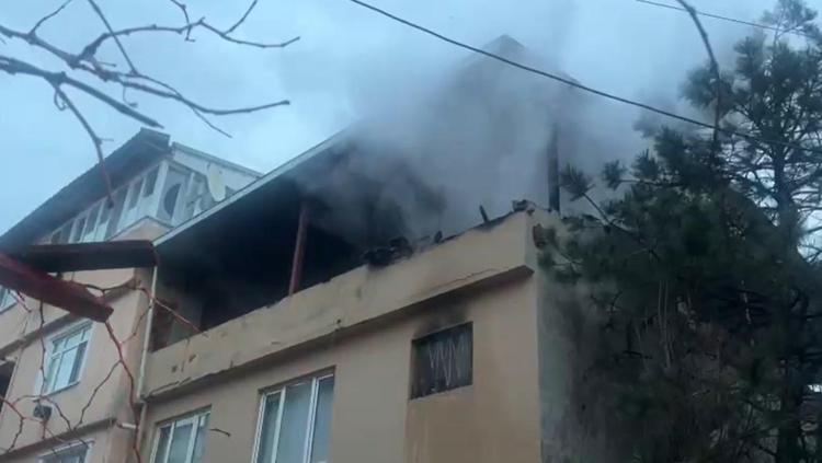 Vatandaşlar hortumla su tutarak alevleri söndürmeye çalışırken, yaşanan panik anları cep telefonu kamerasına yansıdı. İhbar üzerine olay yerine sevk edilen itfaiye ekiplerinin yarım saatte kontrol altına alınarak söndürülen yangında çatı katı kullanılamaz hale geldi. Yangının çıkış nedeniyle ilgili inceleme başlatıldı.