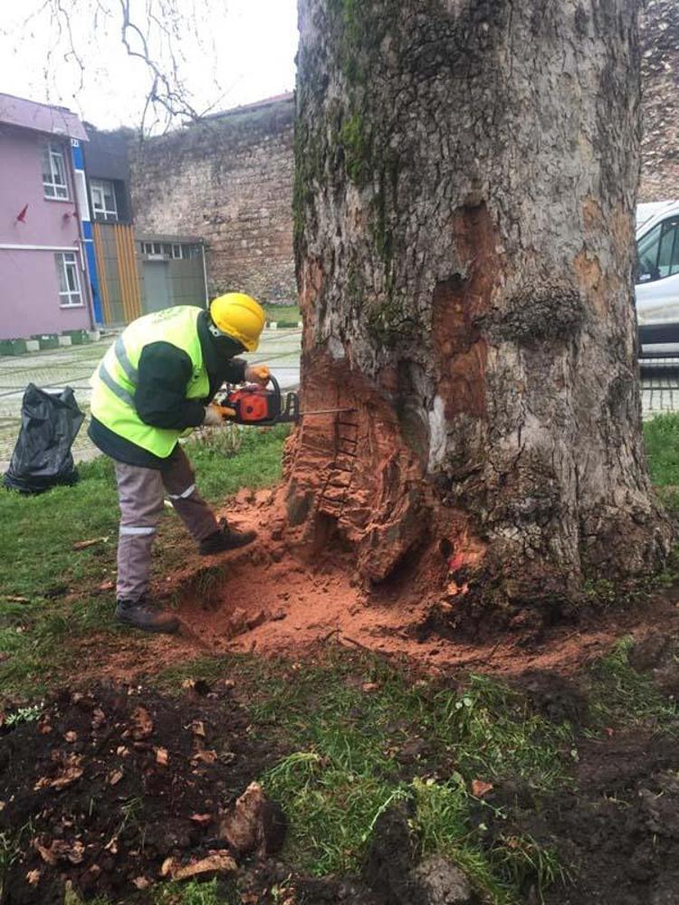 Anıt ağaçlara uygulanan bakım ve tedavileri anlatan Başkan Aktaş, şu ifadeleri kullandı:"Ağaçlarımızın gövde yüzeyinde oluşan çürümeler, mantar, kuruma, böcek zararları, hastalıklı dokular yüzeyden ayıklandıktan sonra, sağlıklı dokuya ulaşıp, onarım ve bakım işlemleri gerçekleşiyor. Ağacın beslenme alanına ilişkin iyileştirmeler yapıyoruz.