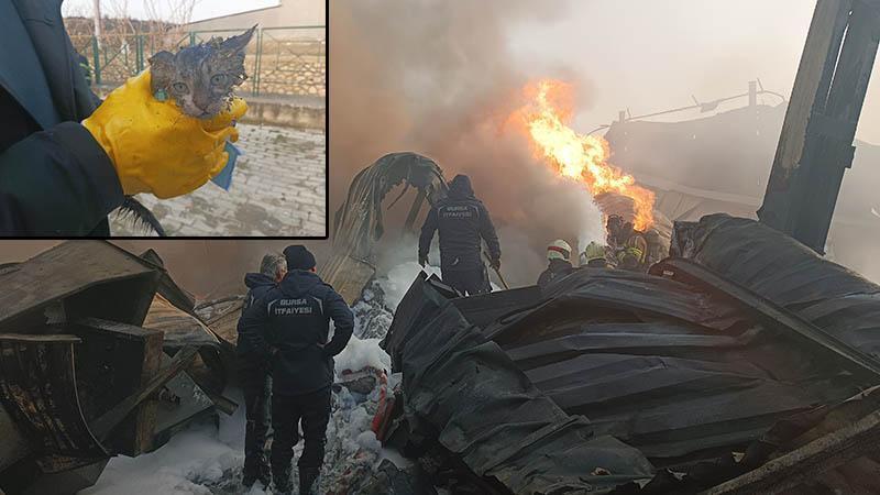Bursa'da geri dönüşüm fabrikasında çıkan yangın tekstil fabrikasına sıçradı. Yangın itfaiye ekipleri tarafından 2 saatte söndürülürken, alevlerin arasından kurtarılan yavru kediye oksijen tedavisi uygulandı.