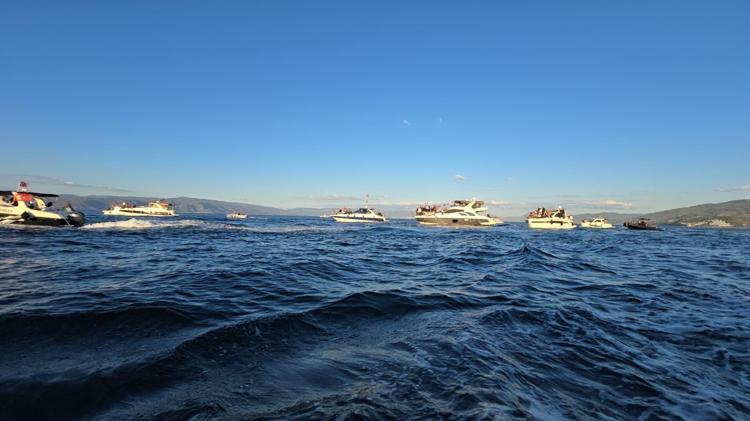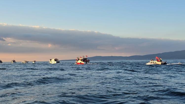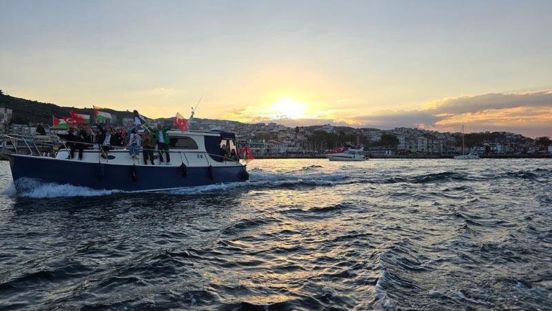 Bursa’nın Mudanya ilçesinde, Filistin bayrağı taşıyan yaklaşık 10 tekne, Gazze’ye insani yardım ulaştıran Küresel Sumud Filosu’na destek vermek için denize açıldı.