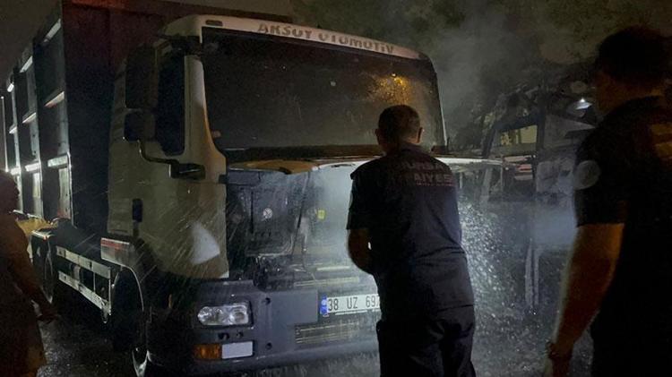 Alevler kısa sürede büyüyerek yanındaki 2 karavan ile park halinde bulunan 1 kamyona sıçradı.