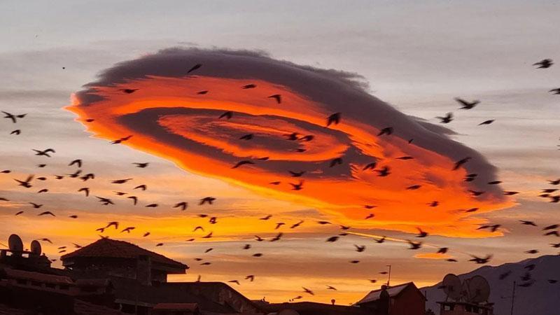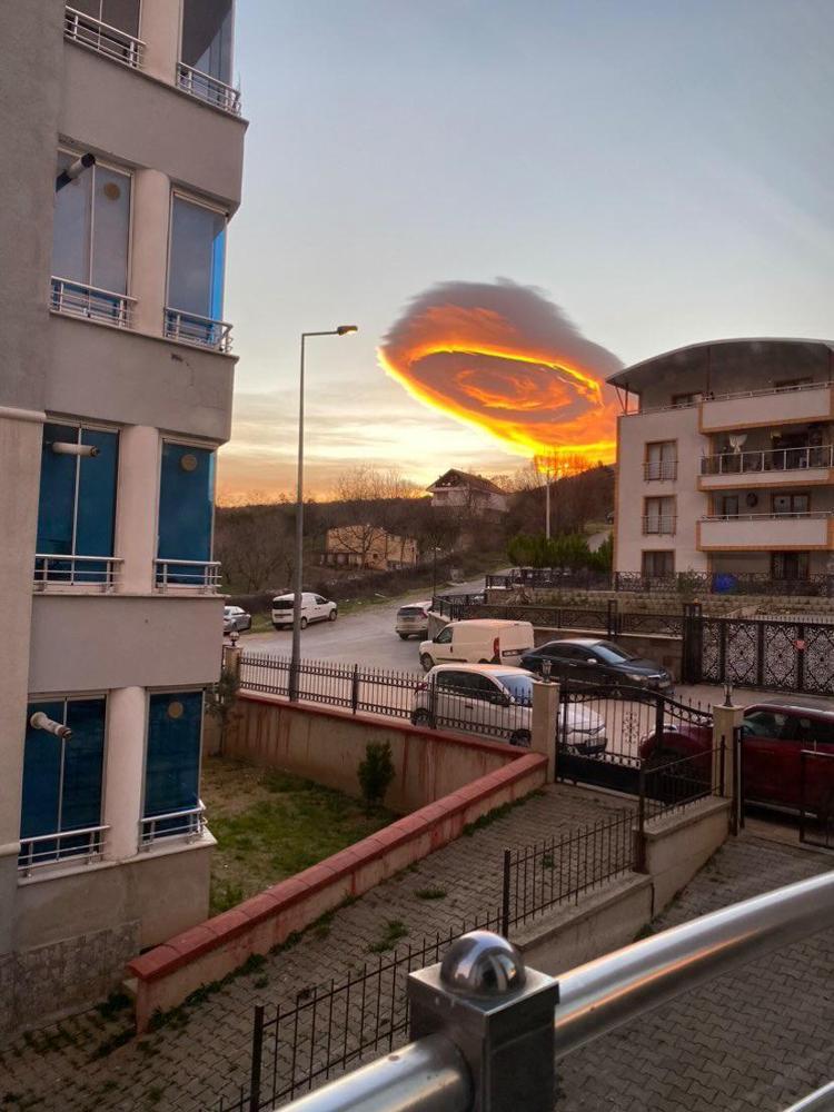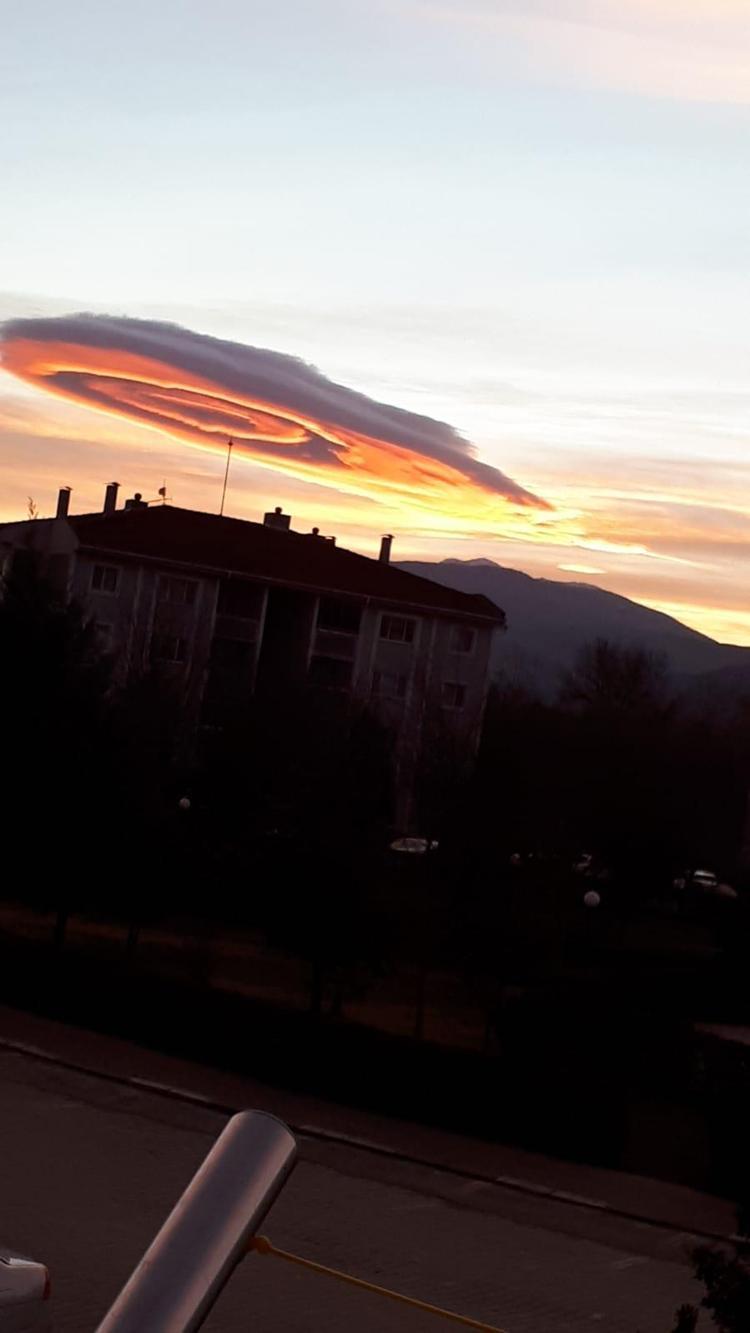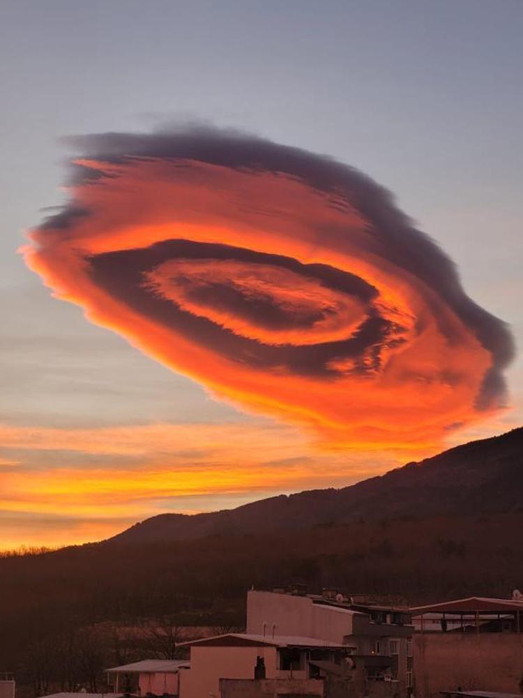 Bursa’da 2 gündür etkili olan lodos sonrası, gökyüzünde güzel görüntüler oluştu. Gün doğumunun ardından, gökyüzünde beliren tek bir bulut kümesi, görenleri hayran bıraktı. İç içe geçmiş daireler şeklindeki bulut, kentin her yerinden görüntülendi.