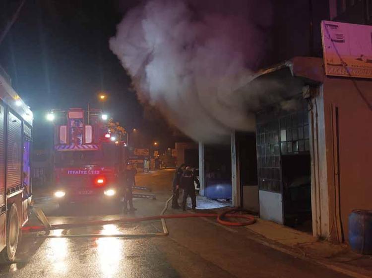 Olay yerine gelen itfaiye ekipleri alevlere müdahale ederken, yangın yan tarafta bulunan oto tamirhanesine de sıçradı.