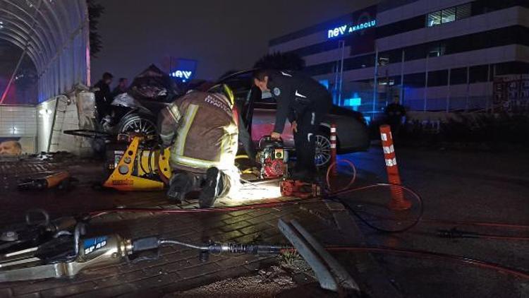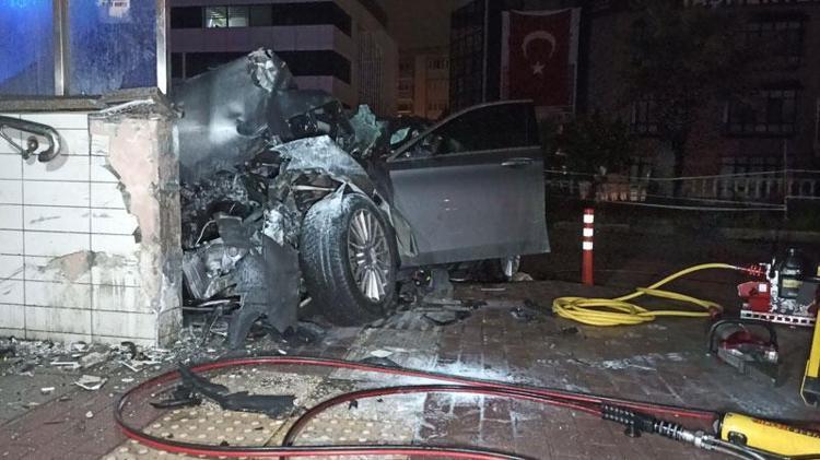 Çarpmanın etkisiyle yol kenarındaki özel bir hastanenin otoparkına savrulan otomobil, önce bariyerlere çarptı ardından da Fatih Sultan Mehmet(FSM) metro istasyonunun yaya alt geçidi girişindeki duvara çarptı.