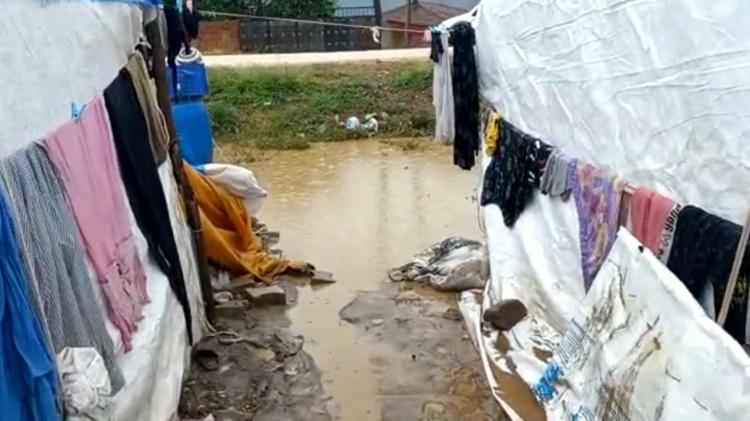 Çoluk çocuk buradayken sel bastı. Sel basınca çadırdan çıkmak zorunda kaldık. Makarnamız, bulgurumuz hepsi gitti. Gece ölümle pençeleştik” dedi.
