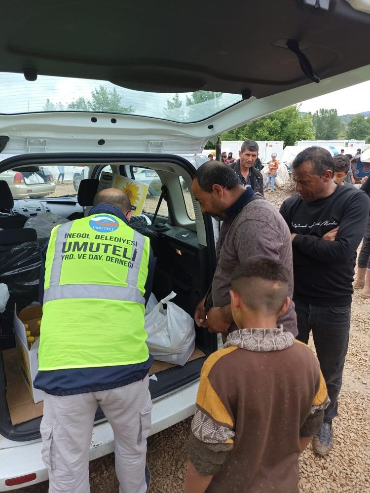 İnegöl Belediyesi, Kurşunlu ve Çitli bölgesinde yoğun yağıştan etkilenen mevsimlik işçilere, gıda yardımı yaptı. Umuteli Sosyal Yardım İşleri Müdürlüğü tarafından 46 aileye gıda yardımları dağıtılırken, yoğun yağış nedeniyle su altında kalan çadır kentte ve çevresindeki yollarda düzenleme gerçekleştirildi.