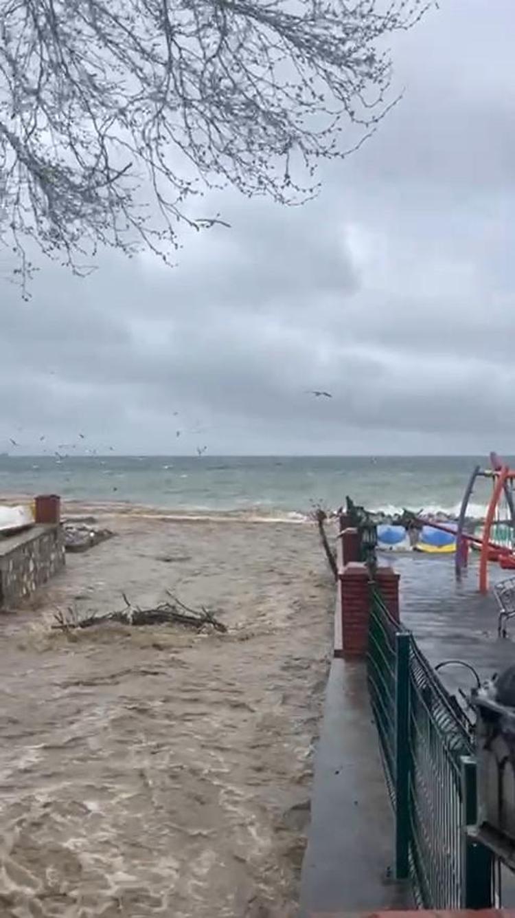 Saatteki hızı zaman zaman 40 kilometreye ulaşan fırtınada oluşan dalgalar nedeniyle Gemlik ilçesi Kumla Sahili’nde bağlı olan 4 kayık battı.