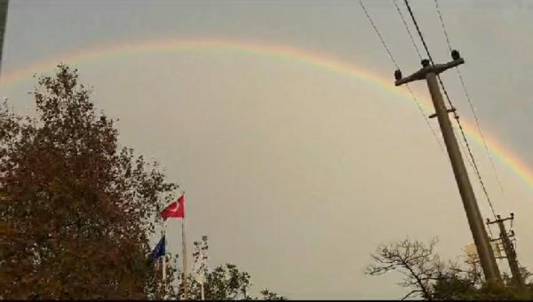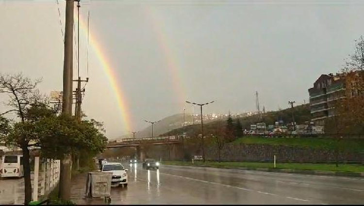 Bursa'da sağanak yağışın ardından oluşan çift gökkuşağı hayran bıraktı