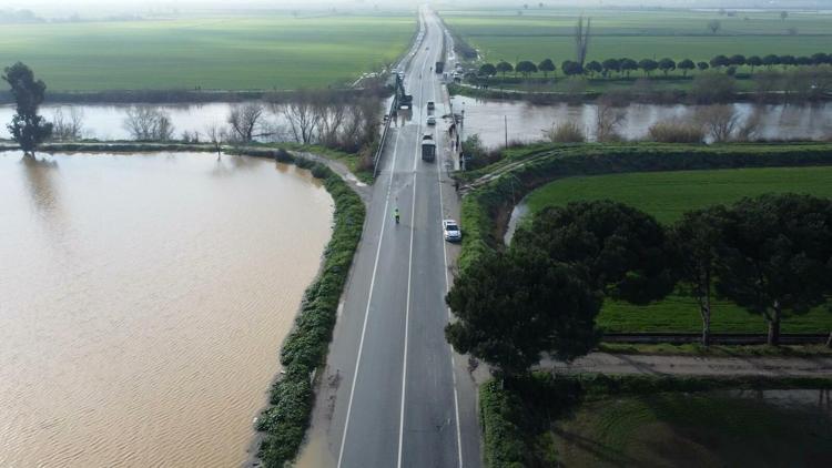 Aydın'da sağanakta debisi yükselen Büyük Menderes Nehri taştı; Koçarlı ilçesindeki tarım arazileri su altında kalırken, bölgede mahsur kalan bir çiftlik sahibi jandarmaya ait helikopterle kurtarıldı.