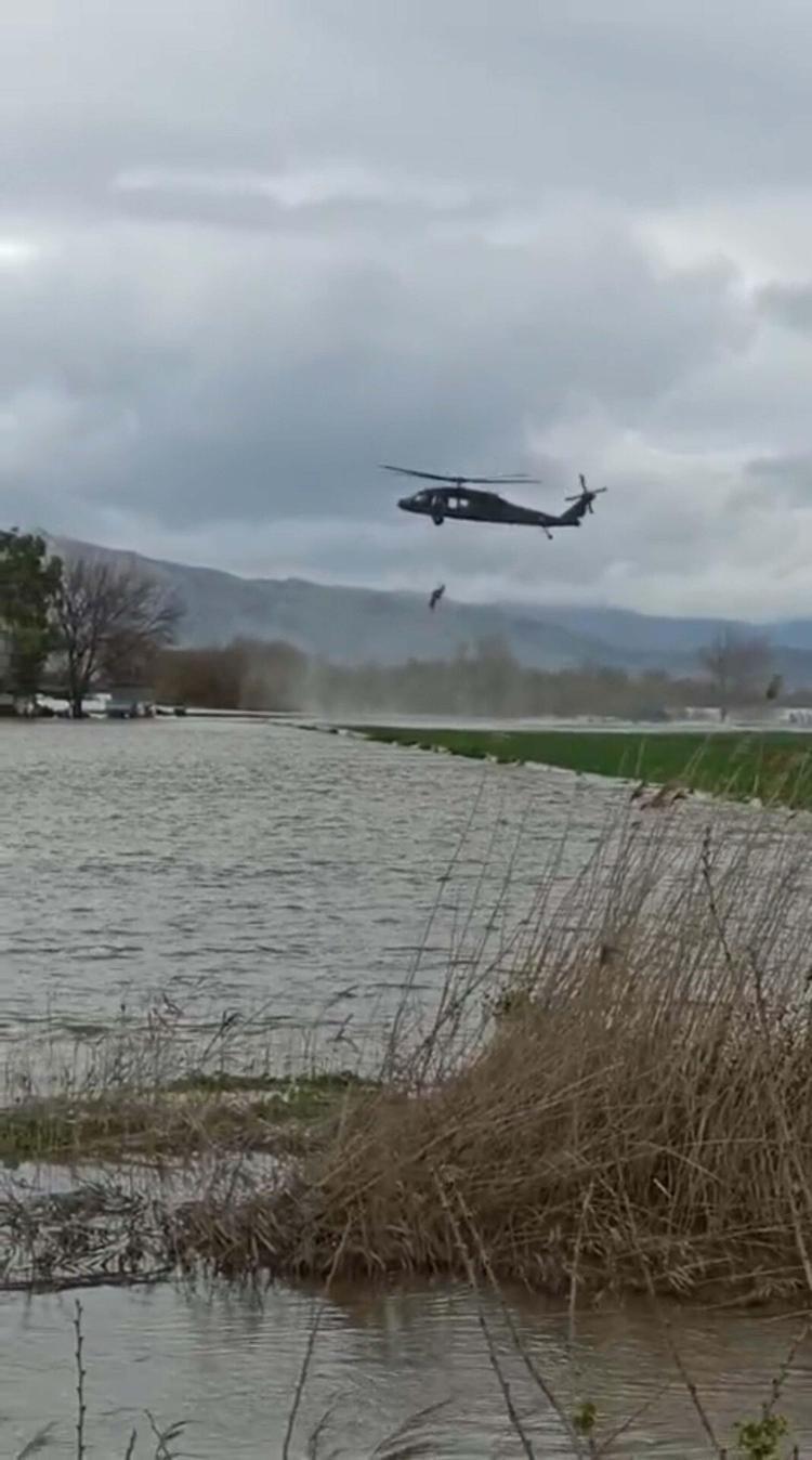 Büyük Menderes Nehri taştı; mahsur kalan çiftlik sahibi, jandarma helikopteri ile kurtarıldı