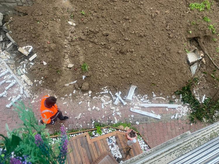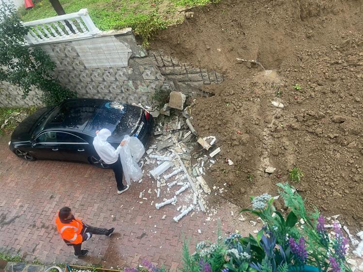 Büyükçekmece'de kuvvetli yağışın etkisiyle bir sitenin içinde bulunan istinat duvarı çöktü. Site sakinlerinden Pınar Özer Aydın, "Binaların boÅŸaltılması mühürlenmesi gerekiyor" dedi.Â