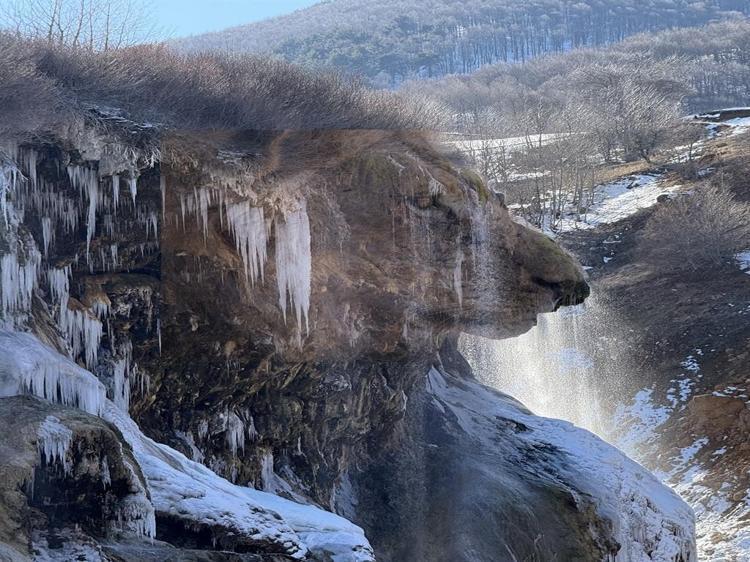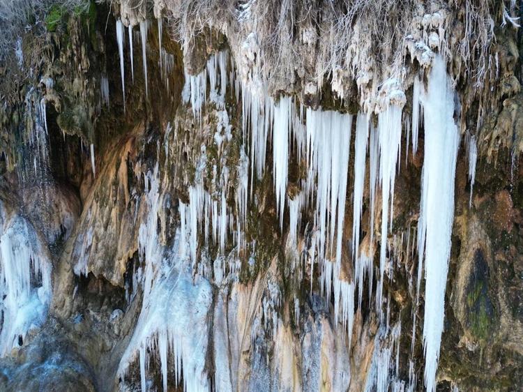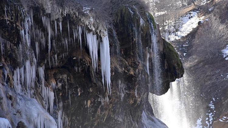 Sivas'ın Doğanşar ilçesi sınırları içerisinde yer alan ve yakın zamanda 'tabiat parkı' olarak ilan edilen Dipsizgöl Şelalesi, soğuk havaların etkisi ile buz tuttu.