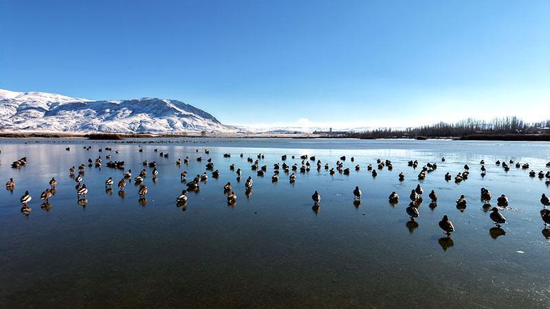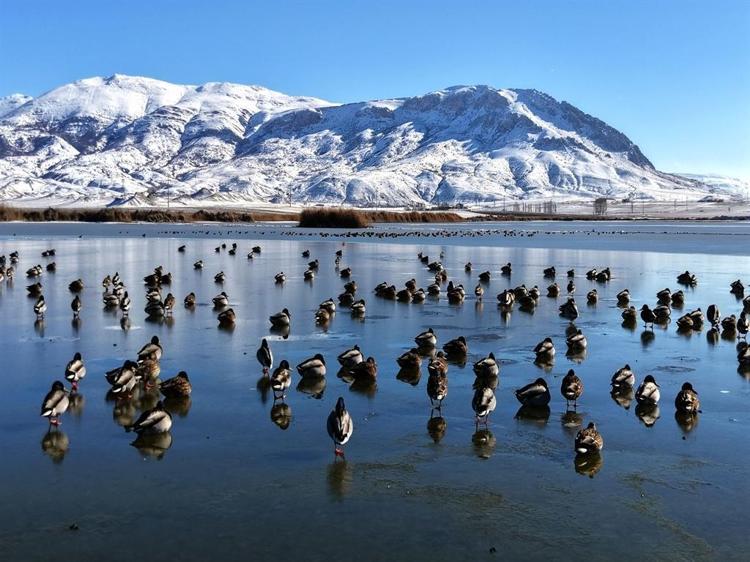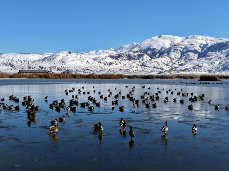 Bu yıl başından itibaren yağışların artmasıyla birlikte normal haline dönmeye başlayan gölün yüzeyi de soğuk havaların etkisiyle buzla kaplandı. Yaz aylarında göçmen kuşlara da ev sahipliği yapan gölde bu günlerde sadece daimi müdavimi olan yeşilbaş ve elmabaş patka ördekleri kaldı. Gölü, kurumaya yüz tuttuğu dönemde de terk etmeyen ördeklerin buzla kaplanan göl içerisindeki toplu görüntüleri havadan görüntülendi. Yüzeyde buz tutmayan az sayıdaki bölümlerde toplanan ördekler, güzel görüntüler oluşturdu.