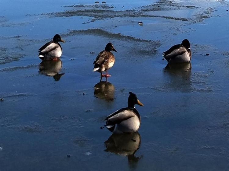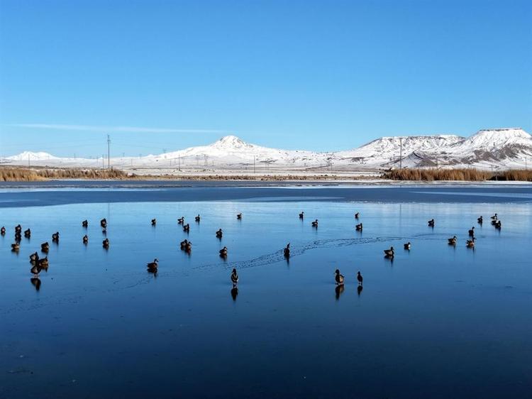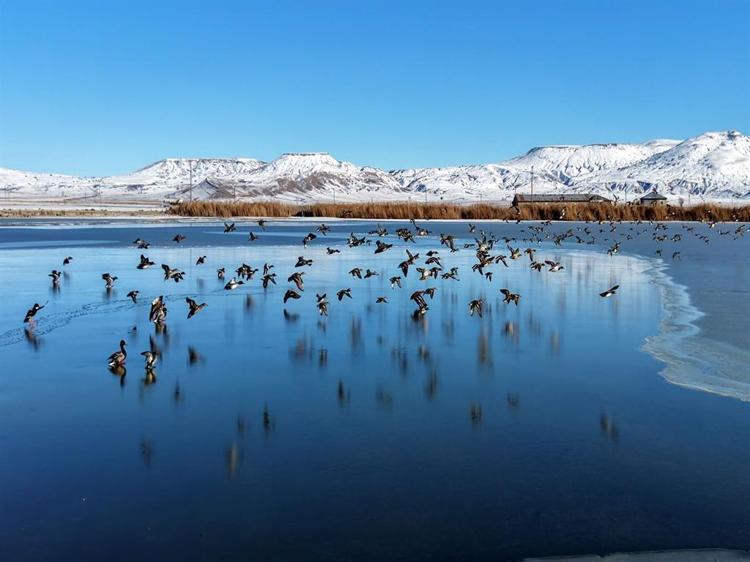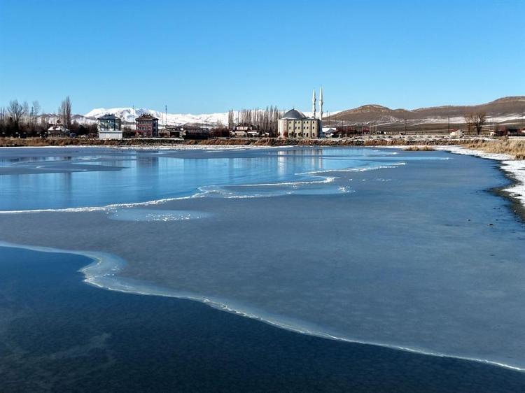 Sivas'da Ulaş Gölü soğuk havanın etkisiyle buz tuttu. Genellikle göçmen kuşların duraklama ve üreme noktaları arasında yer alan gölün daimi sakinleri olan yeşilbaş ve elmabaş patka ördekleri, buz tutan kısımların arasında yer alan su birikintilerine sığındı.