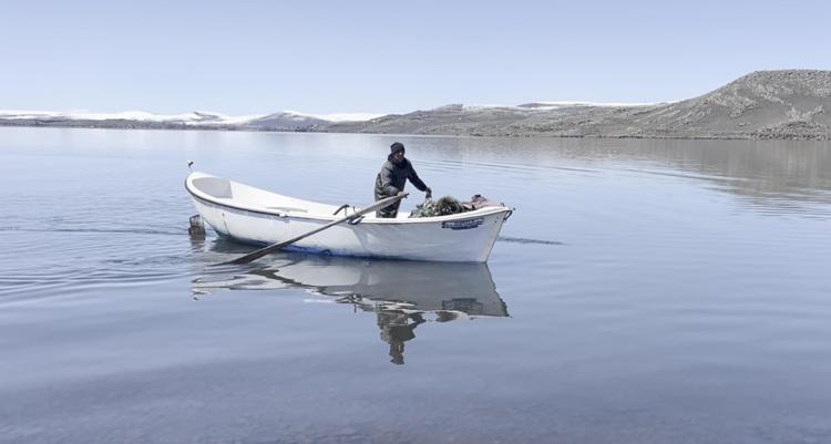 Buzlar çözüldü, balıkçılar sandallarıyla Çıldır Gölü'ne açıldı
