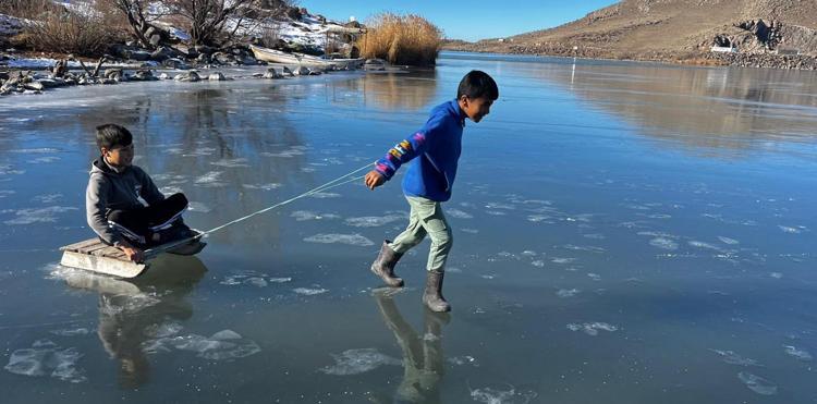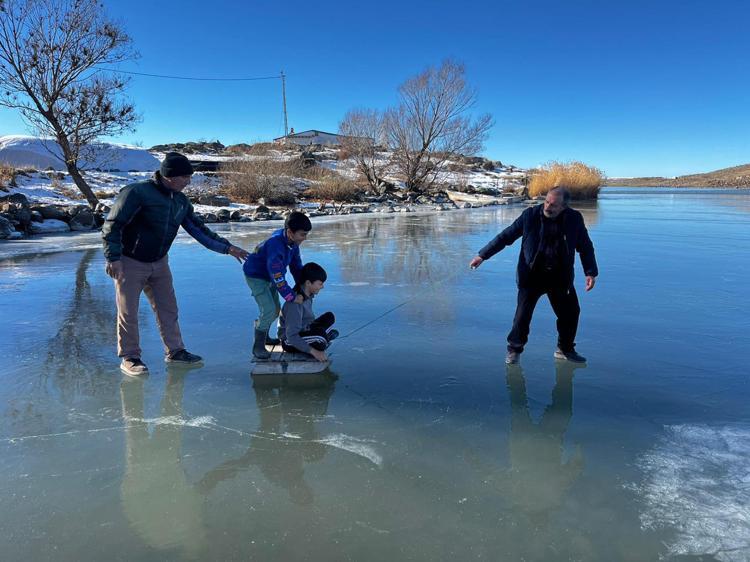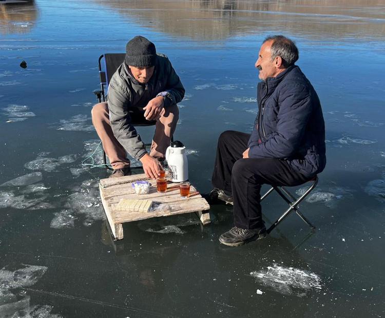 Deniz seviyesinden 1959 metre yükseklikte bulunan, Van Gölü'nden sonra bölgenin en büyük 2'nci gölü olan 124 kilometrekare alana sahip Çıldır Gölü'nün yüzeyi, dondurucu soğuklar nedeniyle buz tuttu. Hava sıcaklığının geceleri sıfırın altında 15 dereceye kadar düştüğü bölgede, Çıldır Gölü’ne gelen balıkçılar, avlanma öncesi kontrollerini yaptı. Doğruyol köyünde yaşayan balıkçı Atanur Dursun, arkadaşı Çetin Cengiz ile buzu inceledikten sonra göl yüzeyine koydukları sandalyelerle çay keyfi yaşadı. Çocukların da kızaklarla kaydığı gölde termosla getirdikleri çayı yudumlayan Atanur Dursun, “Hava güzel. Buzun üstende bir çay içelim dedik. Çay keyfi buzun üzerinde güzel oluyor. Çocuklar da kızak kayıyor. Yakında da inşallah ağlarımızı atarak balık avına başlarız. Buzu kontrol ettik sağlamlığına baktık. Buz sağlam ancak 2-3 gün daha bekleyip sonra ağlarımızı atmaya başlayacağız" diye konuştu.