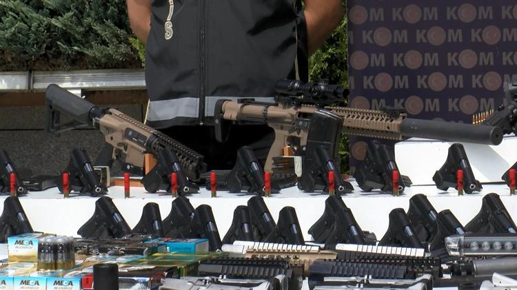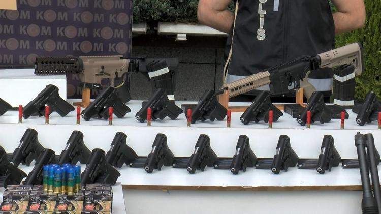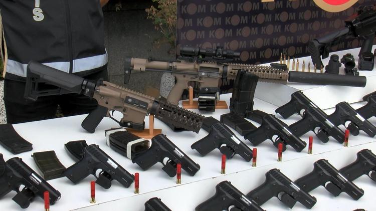 Şüphelilerin adresinde yapılan aramada, 68 adet kurusıkıdan ateşli silaha çevrilmiş seri atış yapabilme özelliğine sahip ruhsatsız otomatik tabanca ve 68 adet şarjör ele geçirildi.