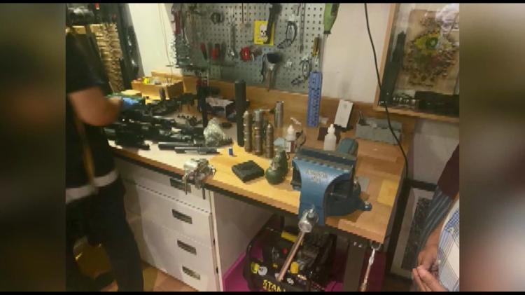 Yurtdışından getirdiği parçalarla evini silah atölyesine çevirdiği belirlenen C.C.'nin evinde ve aracında yapılan aramada, 5 adet uzun namlulu otomatik tüfek, tabanca, 7 adet av tüfeği, kurusıkı tabanca, bin 658 adet fişek, 2 bin 500 adet av tüfeği fişeği, 2 adet balistik yelek, 4 adet hücum yeleği, seyyar tepe lambası ve siren tertibatı, 3 adet kısa ve uzun namlulu silahlara ait susturucu, 5 adet piyade tüfeklerine ait olduğu değerlendirilen tüfek namlusu, 13 adet otomatik tüfeklere ait olduğu değerlendirilen tüfek gövdesi, 19 adet otomatik tüfeğe ait olduğu değerlendirilen dipçik, 31 adet tüfek kabzası, tabanca namlusu, 4 adet otomatik tüfeklere monte edilebilen dürbün, 10 adet otomatik tüfeklere monte edilebilen reddot, tabancalara monte edilebilen lazer, 2 adet muşta, 25 adet uzun namlulu tüfek şarjörü, 20 adet tabanca şarjörü, 9 adet av tüfeği şarjörü, silah yapımında kullanılan çok sayıda kısa ve uzun namlulu silahlara ait tüfek mekanizması ve iğne ve namlu koruma parçaları ele geçirildi.