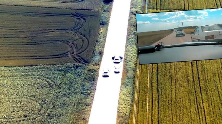 Tekirdağ'da çaldığı otomobille jandarmadan kaçan şüpheli A.K., havadan dron ve karadan takiple yakalandı. Sürücünün kaçtığı ve yakalandığı anlar, dron kamerasıyla kaydedildi.