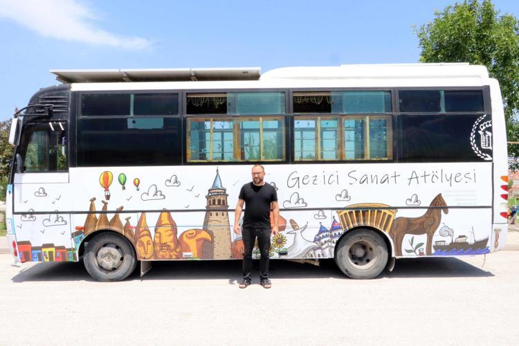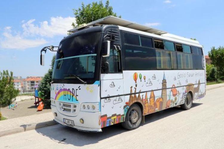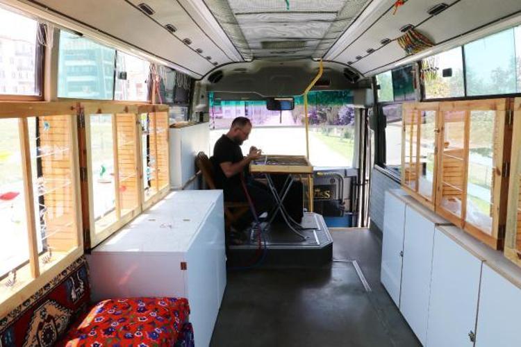 Eskişehir'de, cam ustası Yasin Yüksel (37) ile ebru sanatçısı olan anaokulu öğretmeni eşi Meryem Yüksel (36), 70 bin liraya satın aldıkları otobüsü 100 bin lira masrafla konforlu 'sanat atölyesi'ne çevirdi. 2 ayda 13 turizm noktasına seyahat etmek istediklerini belirten Yasin Yüksel, "Hayallerimizi bir otobüste toplamış olduk. Niyetimiz, Türkiye'yi gezmek" dedi.