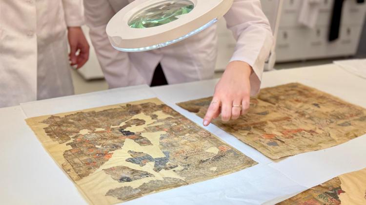 Ankara Restorasyon ve Konservasyon Bölge Laboratuvarında 10 yıldır kağıt restoratörü olarak çalışan Deniz Haberal, önce belgeleme işlemlerini yaptıklarını söyleyerek, "Eser çok fazla buruşuk ve kırılgan haldeydi. Bir sürü parçası vardı ve dokunduğumuz zaman çıtır çıtır kırılıyordu. Bu yüzden önce nem odaları yaptık. Kontrollü bir şekilde eserin düzleşmesini sağlamamız gerekiyordu. Bu işlem uzun sürdü. Kapaklı kutular içerisinde minik kaplara sular koyduk ve içine eseri suya temas etmeyecek şekilde yerleştirdik. Kutu kapaklı olduğu için nem dışarı çıkamadı ve esere nüfuz etti. Böylece de eser yumuşayarak kendini bıraktı ve düzleşmesi sağlandı" dedi.