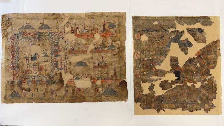 Düzleşen eseri presleyip mekanik ve kuru temizleme yaptıklarını belirten Haberal, "Temizlik işlemleri tamamlandıktan sonra genişçe bir masaya tüm parçaları yaydık ve bir puzzle parçası arar gibi tek tek parçaların yerlerini bulmaya çalıştık. Ortaya çıkan parçalarda gördük ki bu eserler Osmanlı minyatür sanatıyla yapılmış şehir planı tasvirleri aslında. Kabe ve Mekke'yi tasvir ediyor. Daha çok çizim görebiliyoruz bazı eserlerde; çünkü parçaları var elimizde. Bazılarının parçaları çok kayıp olduğu için o boşluk alanlardan veri alamıyoruz. Parçalar birleştirildikten sonra arada boş kalan yerlere uygun gramajlı Japon kağıtlarıyla tamamlama işlemi uyguladık. Sonrasında eserlerin uygulama sonrası, restorasyon sonrası belgelemelerini yaptık ve paketlemelerini yaparak sonlandırdık" diye konuştu.