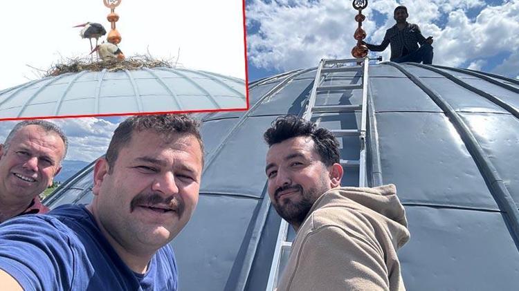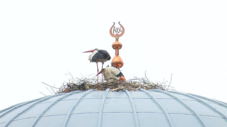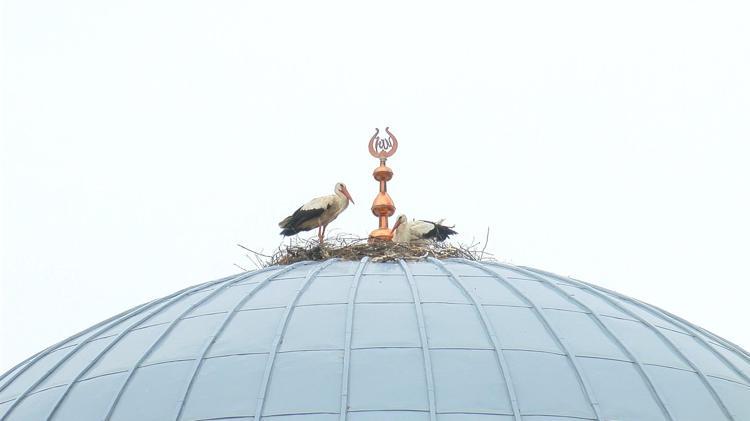 Cami kubbesine çıkıp leyleklere yuva kurdular, adlarını 'Nilüfer' ve 'Doğan' koydular