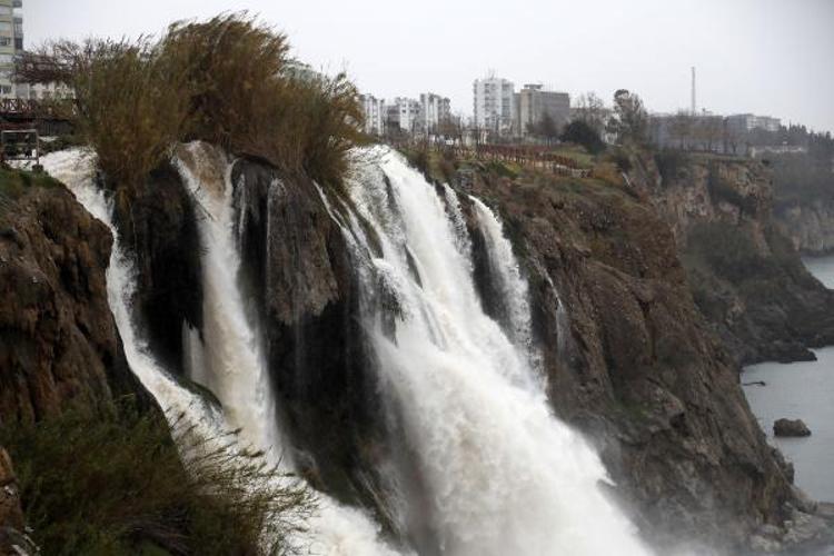 Özellikle Kepez ve Muratpaşa ilçelerinde yaşanan su baskınları sonrası sulama kanallarındaki su seviyesi arttı. Çamura dönen su, Düden Şelalesi'nin 9 koluna doldu. Dünkü yağışlarla debisi artan su, Lara bölgesinde falezlerden dökülen Düden Şelalesi'ni çamura buladı.