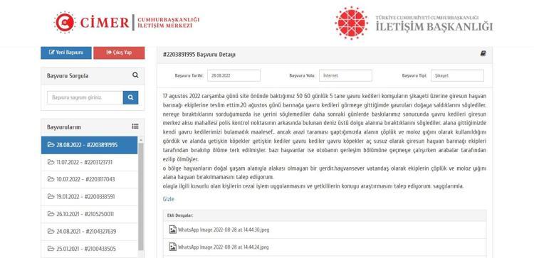 Sahile giden ve aramasında kedilere ulaşamayan Nacakcı, kimliği belirsiz kişilerce bırakılan başka yavru köpek ile kedileri de aç ve susuz buldu. Su ve yiyecek vererek beslediği hayvanları görüntüleyen Nacakcı, CİMER'e bildirdi.