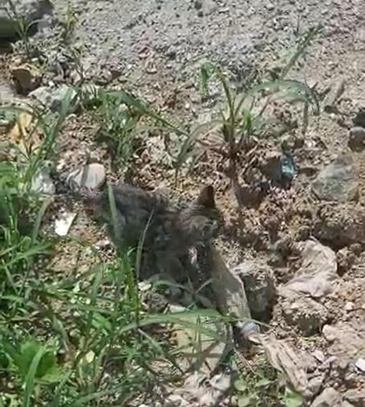 Alandaki aramasında başka sahipsiz yavru hayvanlara rastladığını anlatan Nacakcı, "Arazi taraması yaparken yetişkin kedi ve köpeklere, yavru kedi ve köpeklere rast geldik. Bu hayvanlar burada aç ve susuz bırakılmış.