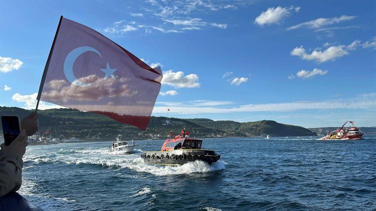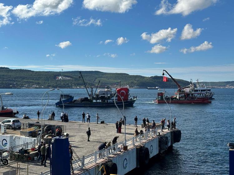 Çanakkale Boğazı’nda teknelerden Küresel Sumud Filosu'na destek turu
