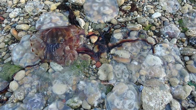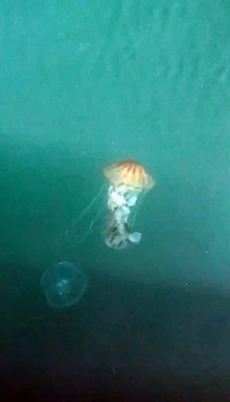 Kırmızı, kahverengi ve sarı renklerde olabilen, 1,5 metreyi bulan tentaküllere sahip denizanaları, cep telefonu kamerası ile de görüntülendi.
