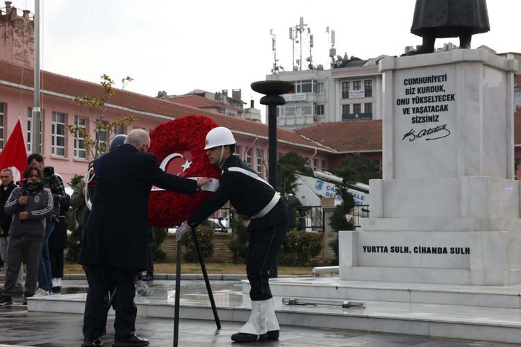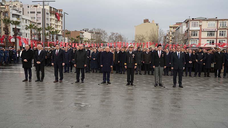 18 Mart Şehitleri Anma Günü ve Çanakkale Deniz Zaferi'nin 111’inci yıl dönümü nedeniyle Cumhuriyet Meydanı'nda tören düzenlendi. Törene; Milli Savunma Bakanı Yaşar Güler, Çanakkale Valisi Ömer Toraman, Çanakkale Boğaz ve Garnizon Komutanı Tuğamiral Mustafa Biçen, Çanakkale Belediye Başkanı Muharrem Erkek, AK Parti Çanakkale Milletvekili Ayhan Gider, CHP Çanakkale Milletvekili İsmet Güneşhan, İYİ Parti Çanakkale Milletvekili Rıdvan Uz, yabancı ülke temsilcileri, bürokratlar, askerler, muharip gaziler, sivil toplum kuruluşları ve çok sayıda vatandaş katıldı. Atatürk Anıtı'na ilk olarak Türkiye Cumhuriyeti adına Milli Savunma Bakanı Yaşar Güler çelenk bıraktı. Ardından Vali Ömer Toraman, Çanakkale Boğaz ve Garnizon Komutanı Tuğamiral Mustafa Biçen ve Belediye Başkanı Muharrem Erkek de çelenk koydu.