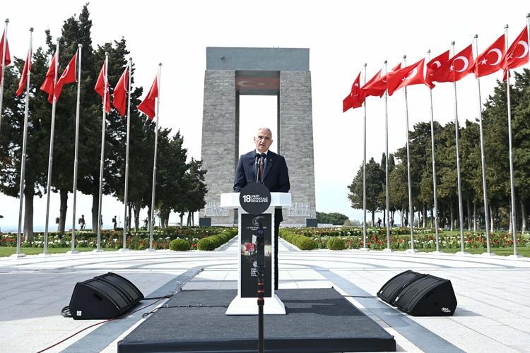 Kültür ve Turizm Bakanı Mehmet Nuri Ersoy ise "Her sahada tarihin akışını değiştiren pek çok eylemin, olayın, çalışmanın, eser ve buluşun banisi olan Türk milleti, istiklal ve istikbali söz konusu olduğunda, vatanına ve bayrağına göz dikildiğinde savaş meydanında da tarihin akışını değiştirmeye, coğrafyaları ve devletleri şekillendirmeye daima muktedir olmuştur. Ordinaryüs Profesör Fritz Neumark bu gerçeği 'Tarihten Türkleri çıkarırsanız ortada tarih diye bir şey kalmaz' diyerek dile getirmiştir. Unutanların hafızasına, 20'nci yüzyılda bir kez daha bu gerçeği mıh gibi çaktığımız yerdir Çanakkale. Vatan söz konusu olduğunda yokluğu ve yoksunluğu umursamayan, tereddüt etmeyen, vazgeçmeyenlerin canlarıyla, kanlarıyla, tertemiz imanlarıyla çizdiği geçilemez sınırdır bu topraklar. 111 yıl önce yazdığımız bu destanın zamansız bir zafer, değeri asla azalmayacak bir örnek olduğunu günümüzde tekrar tekrar tecrübe ediyoruz. Bugün uluslararası hukukun hiçe sayıldığı, vicdanların ayaklar altına alındığı, zevk olsun diye bombalama yapılabileceğinin hayasızca dillendirildiği bir dönemdeyiz. Bizler, 111 yıl önce ecdadımızın ispat ve ilan ettiği gibi güçlünün değil haklının galip geleceğini, kibrin değil sabır ve tevazuya sırtını vermiş cesaretin zafere ulaşacağını dünyaya buradan bir kez daha ilan ediyoruz. Başta Çanakkale şehitlerimiz ve ahirete irtihal etmiş gazilerimiz olmak üzere Türk milletinin varlığı ve mukaddesatı için canını vermiş, kanını dökmüş, ömrünü vakfetmiş cümle geçmişlerimizi; Kurtuluş Savaşı'mızın Başkomutanı ve Cumhuriyet'imizin kurucusu Gazi Mustafa Kemal Atatürk ve silah arkadaşlarını rahmetle, minnetle ve saygıyla anıyorum" ifadelerini kullandı.