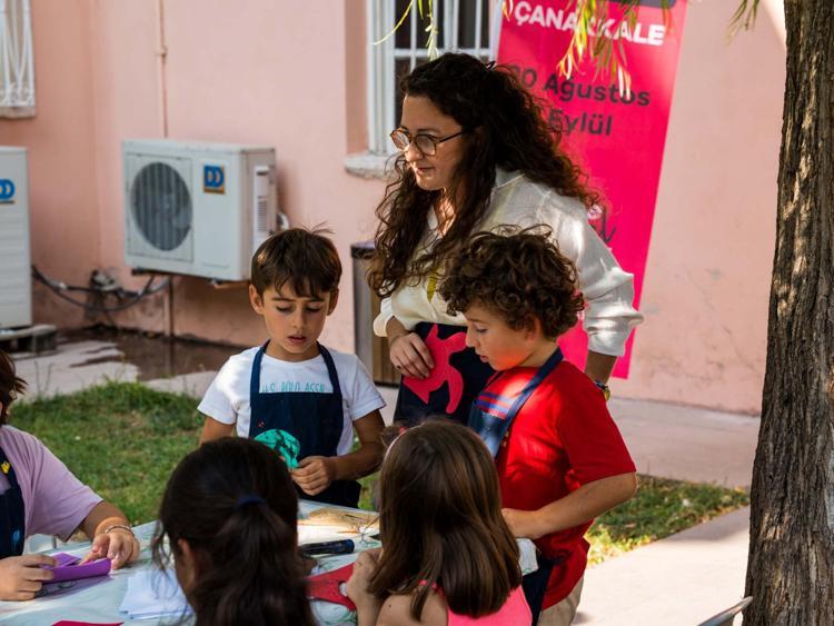 Çanakkale Onsekiz Mart Üniversitesi Yeşil Dönüşüm Koordinatörlüğü tarafından eğitmenler Selin Perk, Dilvin İpek, Hazel Düzgün eşliğinde Devlet Güzel Sanatlar Galerisi Bahçesi'nde düzenlenen 'Renklerle Yeşil Dönüşüm' atölyesinde çocuklar, geri dönüşüm malzemeleriyle yaratıcılıklarını ortaya koyarak hem eğlendi hem de çevre bilinci kazandı.