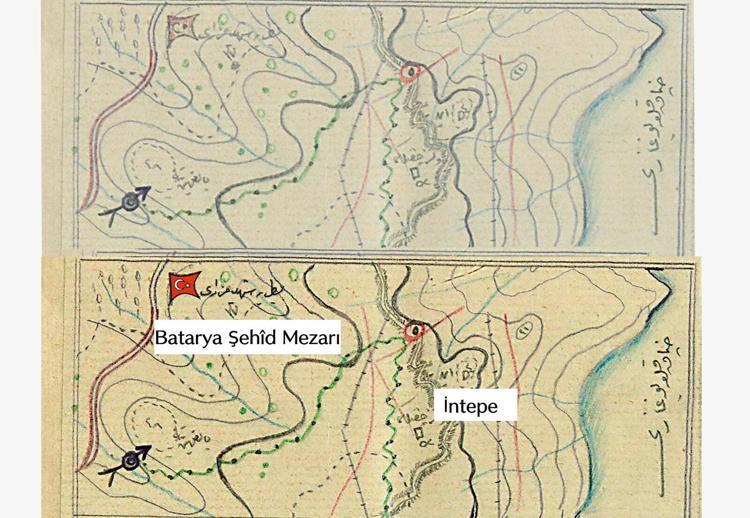 Ancak yapılamayanların da etrafının korunduğunu anlıyoruz. Fakat 1918'de Osmanlı Devleti savaştan mağlup çıktıktan sonra Çanakkale'de 1922'ye kadar süren İngiliz ve Fransız işgalinin olduğu bir dönem var. Bu süreçte de 1915 yılında yerleri belli olan şehitliklerimizin tahrip edildiğini, kaybolduğunu görüyoruz. Ancak askeri arşivde, harp cerideleri ve askeri tutanaklarda günlük yazışmaların içerisinde çeşitli bilgiler paylaşılıyor. Bu Osmanlıca metinlerin içerisinde şehit defnine dair veriler var, bunlar yazılı veriler yani koordinatı belli olmayan şehitlik yapıldığına dair veriler. Fakat nadir de olsa bu harp tutanaklarının içerisinde çeşitli krokiler çıkıyor. Bu krokilerde işaretlenmiş, tanımlanmış şehitlik alanlarına rastlayabiliyoruz. Halileli Batarya Şehitliği' de bunlardan biri" dedi.