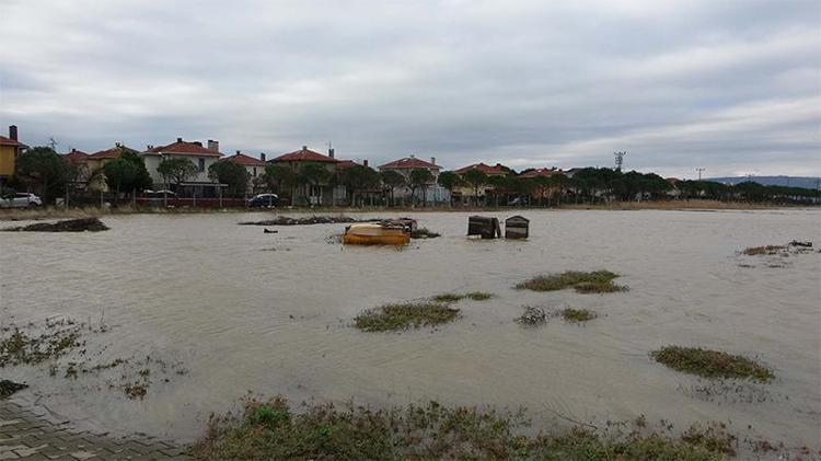 Lapseki ilçesi Umurbey beldesi Sahil Mahallesi'nde yollar göle dönerken, sağanak gece saatlerinde itibaren etkisini yitirdi.