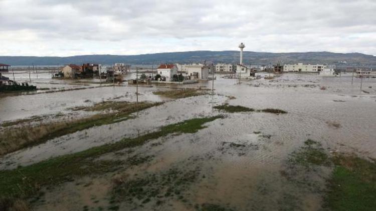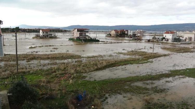 Çanakkale'de etkisini yitiren sağanağın ardından bölge sakinleri, çekilmeyen sular nedeniyle zor anlar yaşadı. Su basan evlere, ulaşım sağlanamadı.