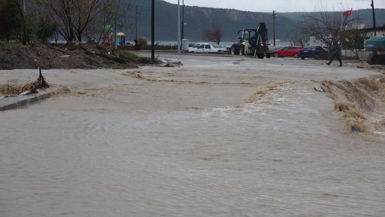 Öte yandan, Lapseki ilçesine bağlı Umurbey beldesindeki Sahil Mahallesi’nde de yollar suyla doldu, yaya ve araç sürücüleri zor anlar yaşadı.