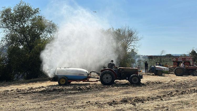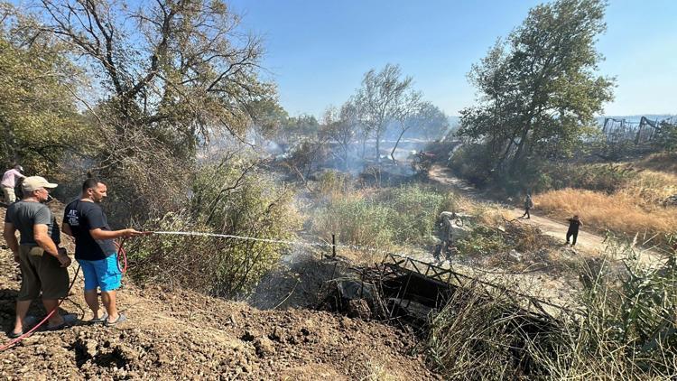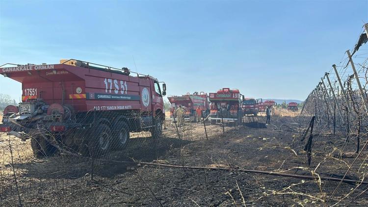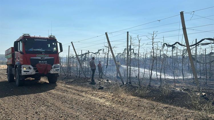 Çanakkale'de tarım arazisinde yangın çıktı. Yangın 1 saatte söndürülürken, bölgede bir sera yandı.