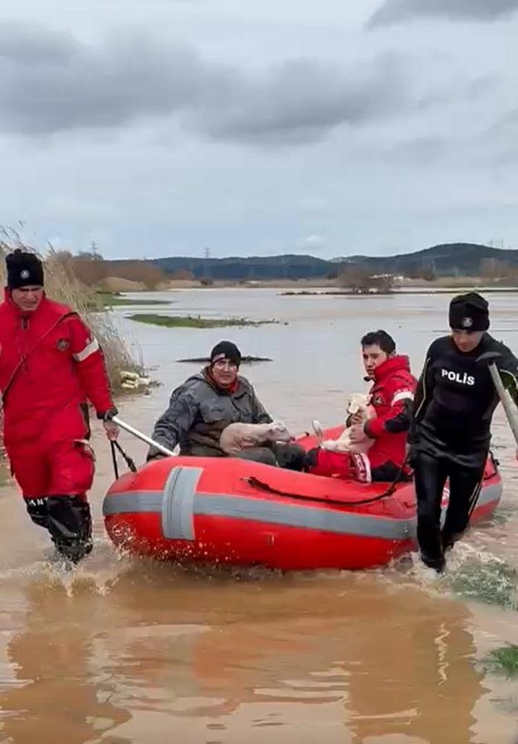 Çanakkale'de etkili olan sağanak nedeniyle taşan Sarıçay'ın ardından Ezine ilçesinde bulunan Menderes Çayı da taştı. Taşma nedeniyle bölgedeki tarım arazileri su altında kalırken, Güllüce köyü yolu üzerinde bir ağılı su bastı. Şahin Avcı, yeni doğan 2 kuzusu ile birlikte ağılda mahsur kaldı. İhbarla bölgeye polis, itfaiye, zabıta, ambulans ekipleri sevk edildi.