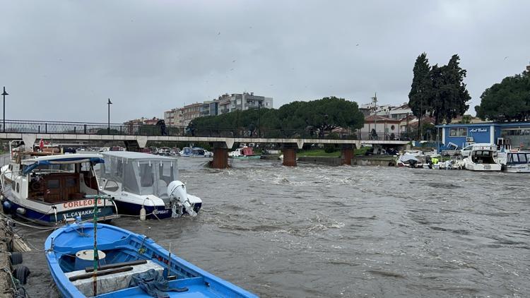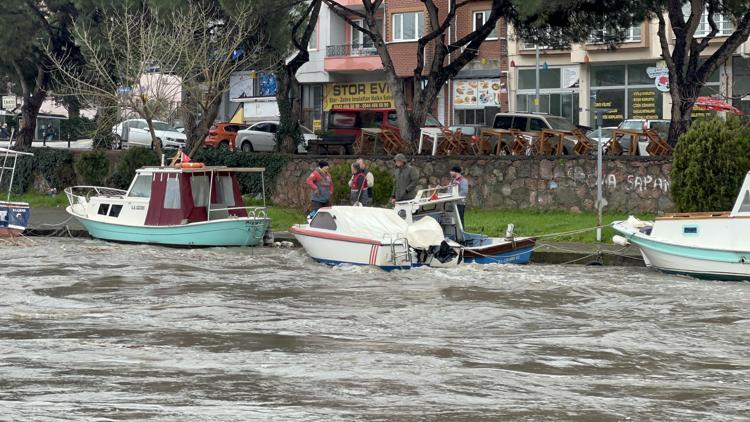 Çanakkale'yi ortasından geçerek ikiye bölen Sarıçay'da gece saatlerinde yaşanan taşkında zarar gören bazı tekneler su alıp, battı.
