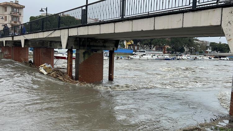 Çanakkale'de Atikhisar Barajı'nın dolusavağının açılması ve kentte aralıklarla etkili olan sağanağın ardından Sarıçay taştı. Bölgedeki bazı işletmeler ile tekneler su altında kalırken, taşan Sarıçay dron ile görüntülendi.