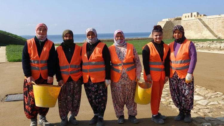 Çanakkale'deki köylü kadınlar, Seddülbahir Kalesi'ni restorasyonunda çalışıyor