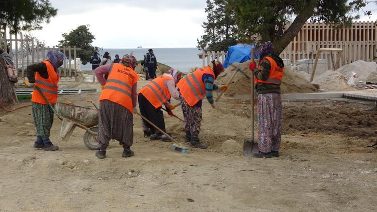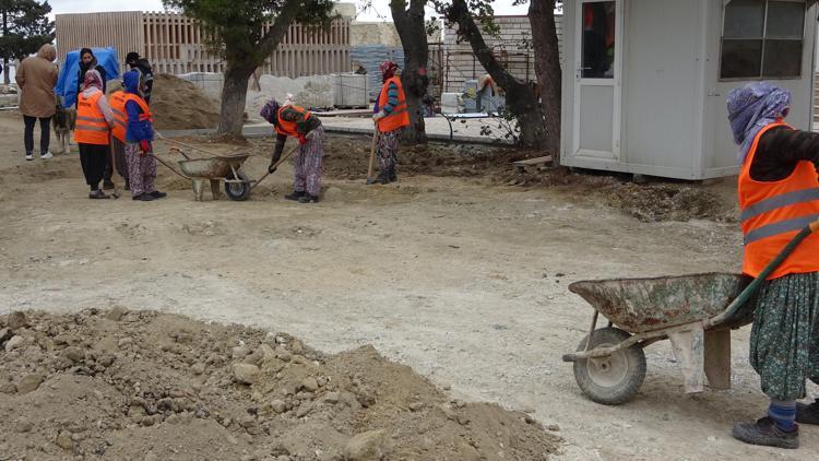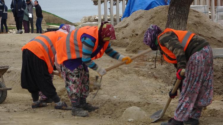 Çalışmalara katılan Müjgan Meriç, "Kaledeki restorasyon çalışmalarında, Tarihi Alan'da çalışmak çok güzel bir duygu. Toprak düzeltiyor, çim ekiyor, gübre taşıyoruz. Bu alanı düzenlemek gurur veriyor" ifadelerini kullandı.